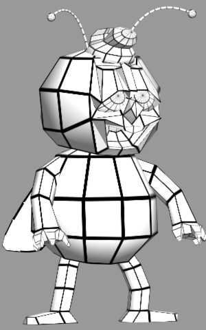 En mi opinión hay cosas que funcionan en el modelo 2d, pero no funcionan tanto en el modelo en 3d, y es que ese paso no es nada sencillo. En el modelo 2d todos los miembros van separados del tronco, y no pasa nada, de hecho, tiene gracia por eso, pero en el caso del 3d, los cortes tan fríos entre las superficies nunca quedan tan bien, sobre todo si en algún momento quieres animarlo veras que es muy difícil que los ángulos en las superficies queden como tu quieres.