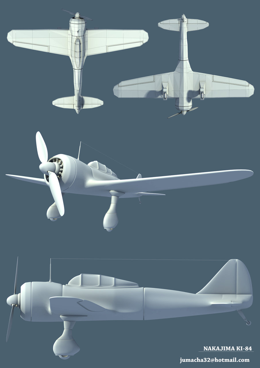 Y bueno, decir que he volado unas cuántas veces el ki-84 en los simuladores y cuando he visto tu modelo, enseguida sabía que algo fallaba, ya que no recordaba que el ki-84 tuviera pantalones, siempre con tren retráctil, y 4 palas. Ello me ha hecho ir a revisar las fotografías de ese avión que corroboran lo que yo veía, que ese modelo no es el ki-84 Frank.