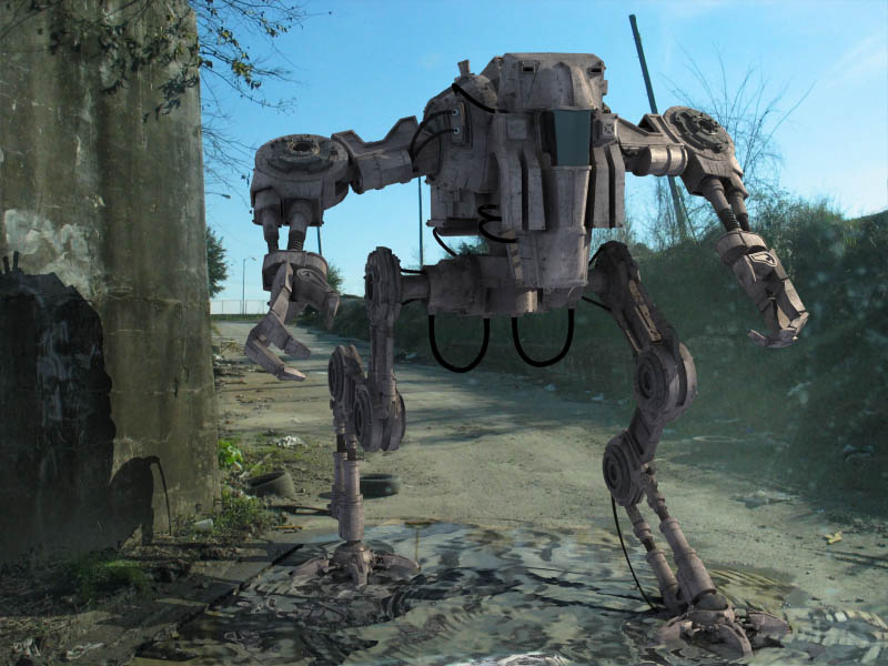 Se ve bien, igual trabajaría más la textura del bicho, pondría unas huellas por el camino, (se supone que pesa así que, tiene que dejar unas buenas huellas.) el charco no me acaba de convencer, igual poniéndole las marcas de ondulaciones de agua alrededor de los pies.