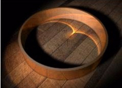 En la imagen podemos apreciar que la escena es iluminada por una luz que refleja sobre la textura dorada del anillo reflejando sobre el suelo un rayo de luz, cabe mencionar que el suelo esta texturizado para dar una apariencia de madera.