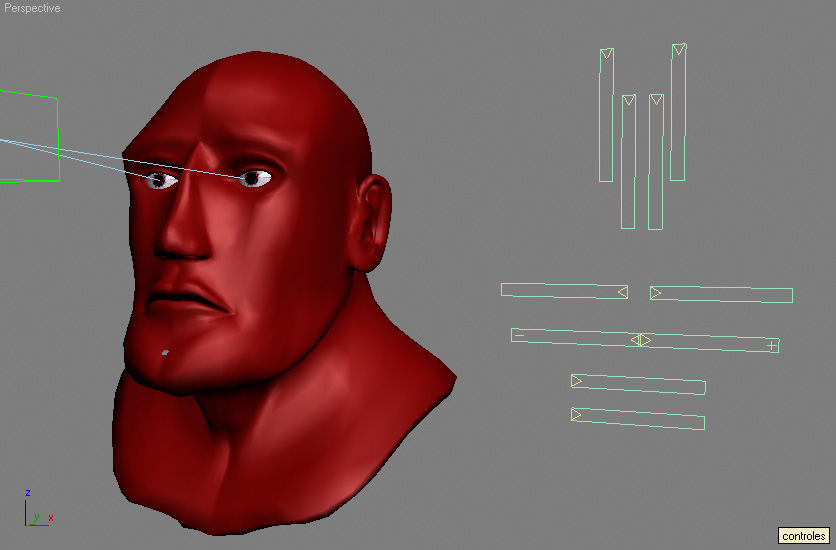 Para los ojos le puse un dummie con look at a las esferas. Creo que así es más sencillo porque el punto de mira es más fácil de controlar.