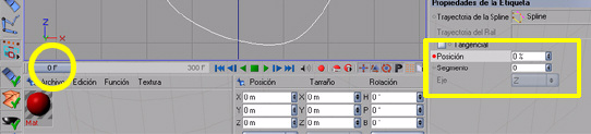 Le asignamos una etiqueta a la esfera, botón derecho sobre el objeto esfera seleccionado: Cinema 4D etiquetas > alinear a una Spline. Arrastramos esta Spline dentro del campo trayectoria de la Spline.