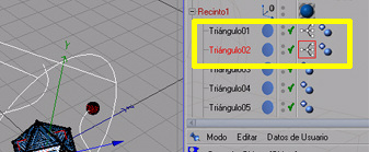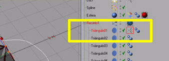 Finalmente, continuando dentro de la ventana de Xpresso, arrastramos dentro el objeto triangulo01.