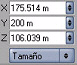 Los valores elegidos están relacionados con el tamaño de la figura sobre la que aplicamos el shader, nuestra intención es crear un Shader animado que haga aparecer nuestro objeto de arriba abajo y empiece aproximadamente en el techo del objeto y centrado, así en mi caso el tamaño del objeto es.