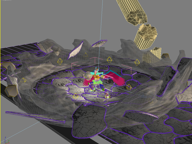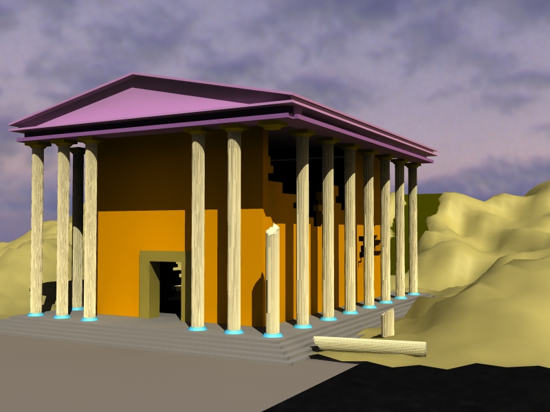 En cuanto al fondo, adjunto un par de fotografías de un prototemplo con algo de terreno que quería haber puesto, pero requería mucho tiempo y lo importante era el caballero, así que, sólo experimente un poco. En los dos día extra que tuve pude hacer el crater para levantar las losas y éso, pero no pude abordar el templo. Mi deseo habría sido que el torbellino del cosmos deshiciera el templo y se vieran ladrillos y columnas por el aire. Como lo que ha quedado al final, pero mucho más bestia.