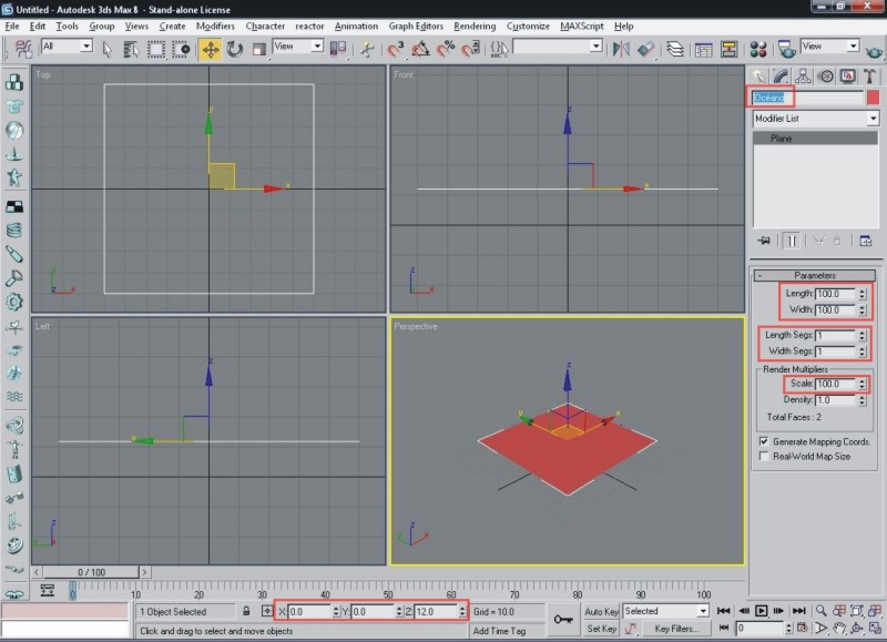 1.- Empezamos ha crear un objeto tipo plane con los siguientes parámetros y posiciones cómo se muestra en la siguiente imagen y le damos un nombre océano este objeto será el mar.