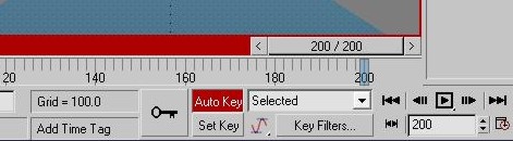 2.- Ahora activamos el botón de animación auto key y posicionamos nuestra barra de tiempo en el frame 200.
