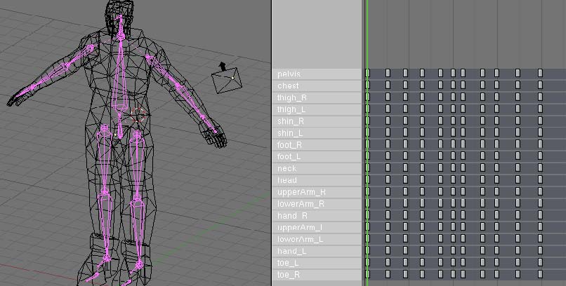 Una desventaja importante de la animación esquelética es la pérdida de control preciso sobre la posición de los vértices en cada cuadro clave. También la malla no siempre se deforma correctamente, como, por ejemplo, en la contracción de un bíceps al mover el hueso del antebrazo. Por otra parte, la animación per-vertex consume mucho tiempo ya que se debe definir la posición de cada vértice individualmente, sin embargo, ofrece un control más completo. Para este tutorial usaremos animación esquelética.