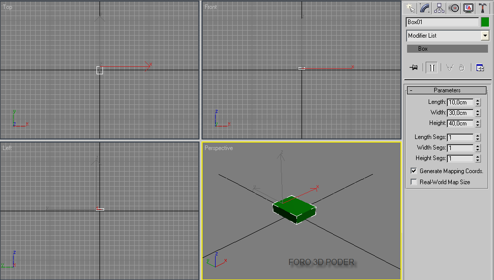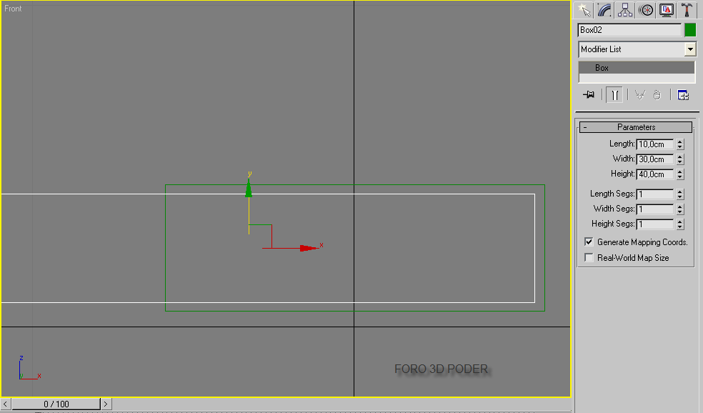 El primer y sencillo paso de este primer paso es crear un box del tamaño que nosotros queramos, las medidas que utilice en este caso son de 10 centímetros de Lenght, width 30 centímetros, height 40 centímetros.