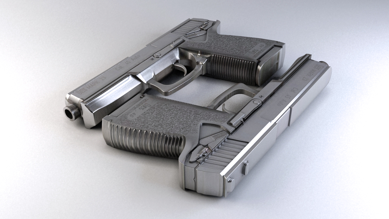 Hola. Saliendo un poco del modelado orgánico hice este modelo de un día de trabajo. Más adelante planeo ponerle la textura definitiva y corregir uno que otro filtro de la pistola que falta por pulir.