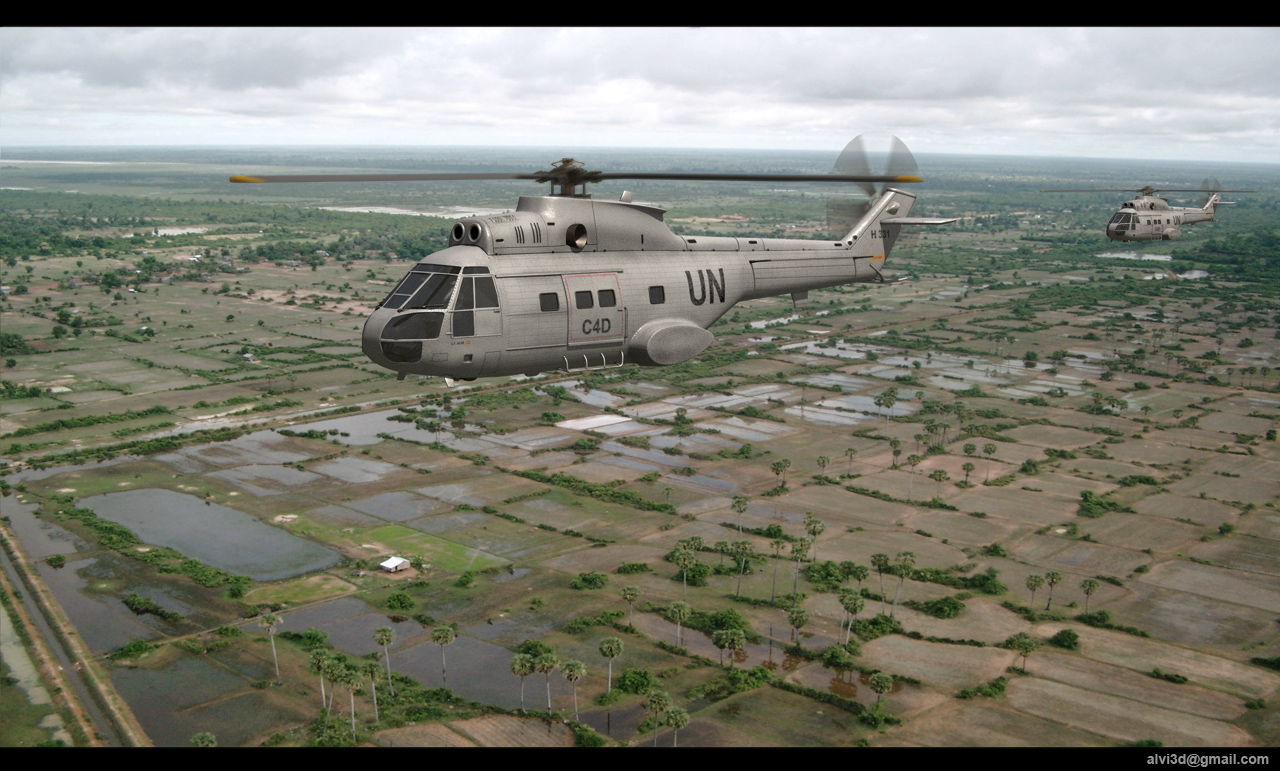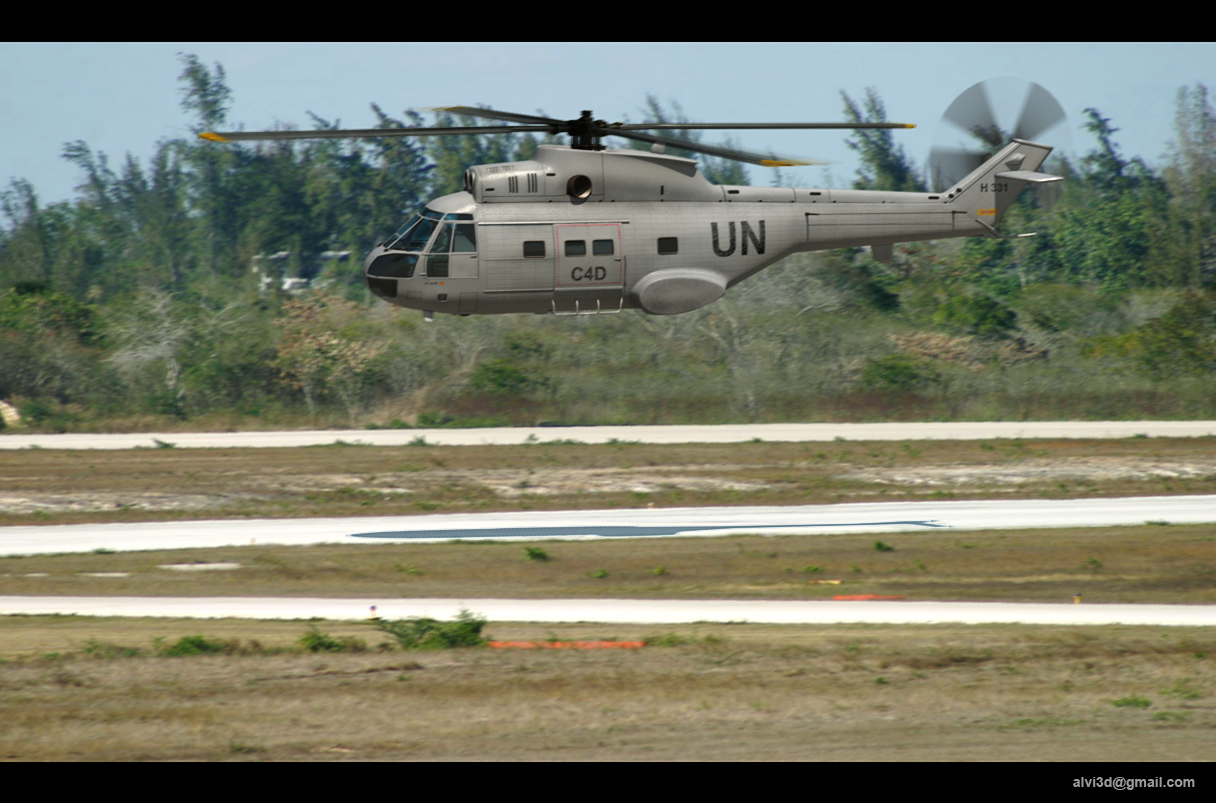 Alvi creo que un poco de desenfoque al helicóptero le daría mayor realismo, porque lo veo todo como muy estático y canta, a ver si lo mejoras porque con un poco de postproducción lo dejas niquelado.