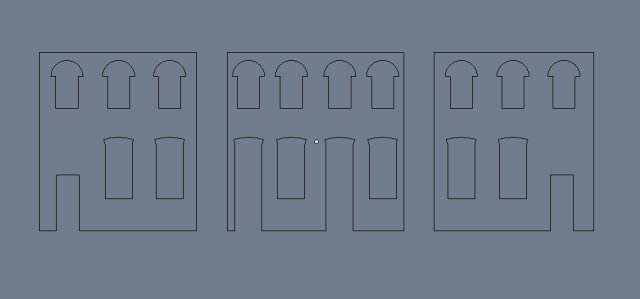First import the prepared dxfs. Notice window perimeters are todo the outside of the arched brickworque above the window openings and todo the bottom Edge of the window sill. The intention is todo model the arched brickworque heads and sills separately and in order for the mesh2curve, py Python script todo work, the outlines ned todo be simplified continuous shapes. The script is available from 3r website.