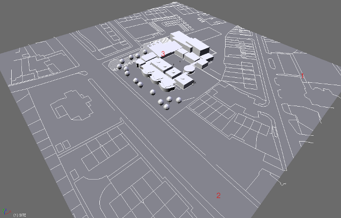 As an alternative todo modeling the hola of the site, where perhaps youre just doing a massing model and want todo show the building in relation todo it surroundings, you could just use an image file as your site, perhaps colored up in the Gimp or Photoshop. Here a method: