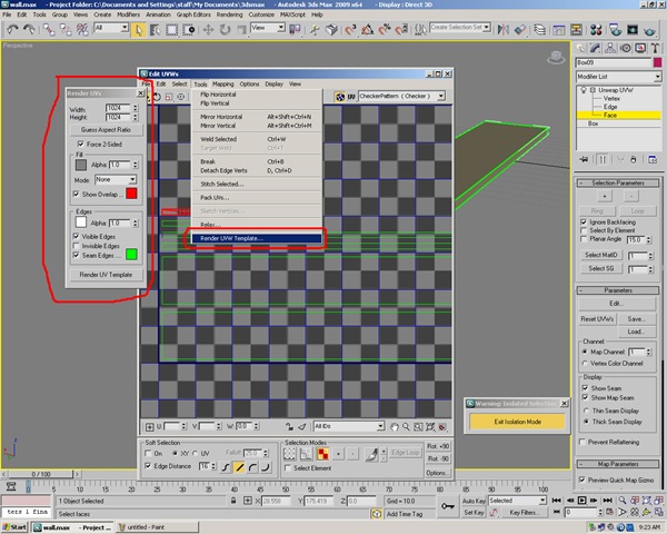 Now the exporting section, from tools, Access the render UVW template and in that box, render your template and save the image as a tif file.