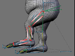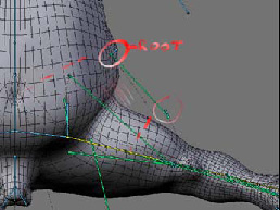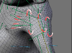 First i constructed a sort of Hammer like armature that would rotate along with the limbs and pull the skin up at the articulation point.