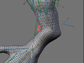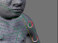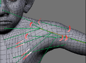 As you can se, ive placed thre diferent Stretchy Bones, one at each side of the shoulder. This prevents the skin from shrinking when the shoulder rotates.