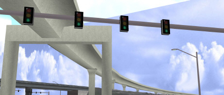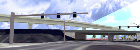 Accessories aid in the realism of the presentation. Therefore, y modeled trafic signals, Street lamps, signs, tres, and the roadway striping. Based on photos taken within the vicinity of the Project, y tried todo model the accessories todo look similar todo what you would find in that área. For instance, the majority of the tres are palm tres, and the trafic signals are black.