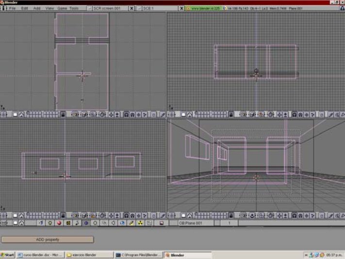 La ventana 3d es donde se pasa la mayor parte del tiempo en Blender. En esta ventana pueden cambiarse los objetos de la escena, editar sus vértices, agregar cámaras, entre otras opciones. En esta vista 3d se puede realizarla navegación, puede rotarse la vista de la ventana 3d, puede moverse, es decir, arrastrarse cambiándola de lugar y puede aplicarse un zoom. En la ventana 3d, puede desplegarse una escena en varios modos (especialmente si no se cuenta con hardware para 3d, ya que esto puede representar una enorme diferencia en el desempeño). Estos modos son la vista wireframe y la vista sólida. La vista sólida despliega una escena con un poco de sombreado aun cuando no se haya definido una fuente de luz. Puede mostrarse una vista sólida con los colores reales del Game Engine y otra vista además de la anterior, es la que muestra las texturas aplicadas a la escena. Se debe tomar en cuenta que estas vistas cumplen su función solo cuando se a aplicado radiosidad a la escena y/o se han aplicado texturas, además de que éstas vistas consumen una mayor cantidad de recursos de la máquina.