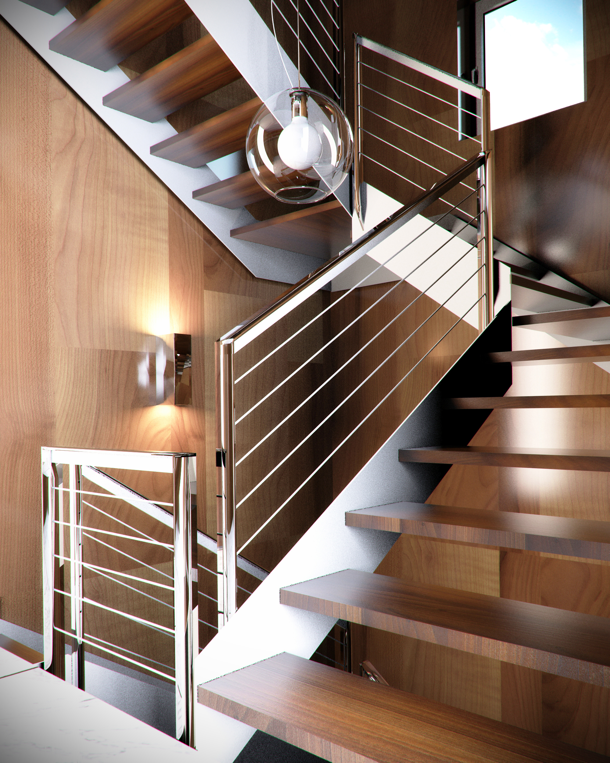 Está muy buena la escena como siempre, lo único que no me cierra es el (*.mat) de la viga zanca metálica que sujeta los escalones, es metal blanco? El gris metálico? No sé, me confunde un poco.