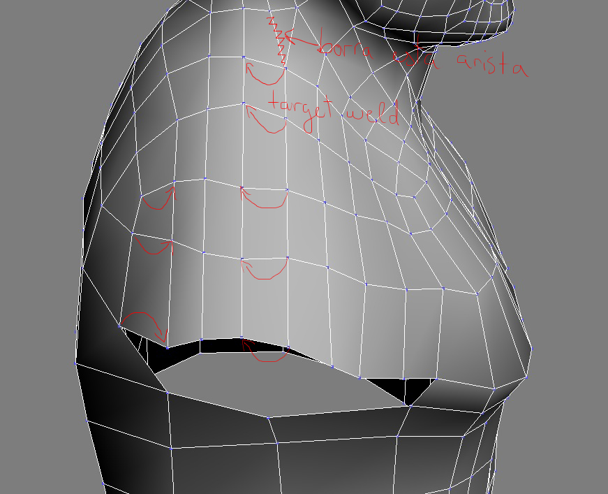 Hola, me gustaría saber cómo podría reducir polys aquí, el problema es que me salen 12 lados para el brazo y me gustaría que tuviera 10, alguna idea? Gracias.