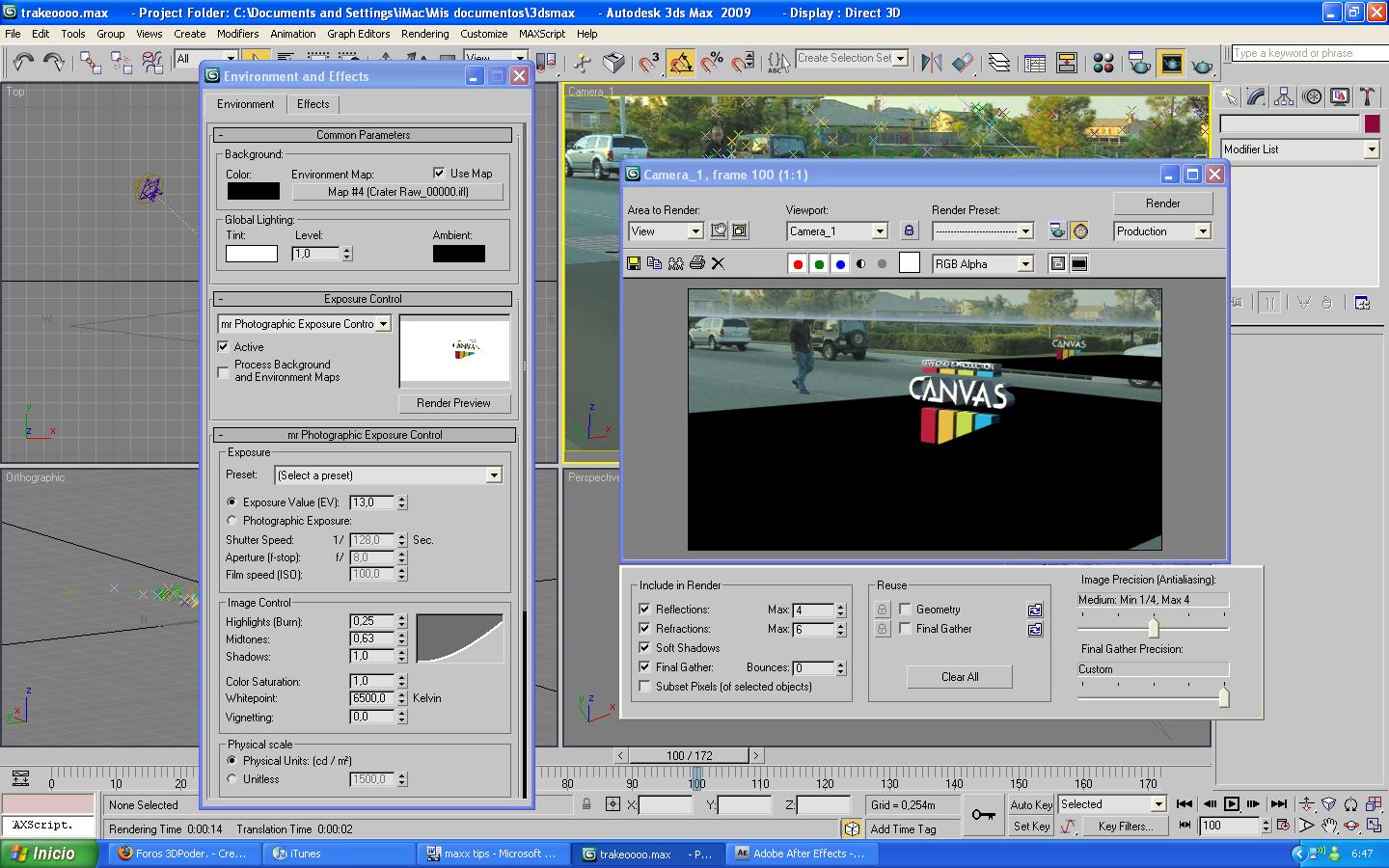 Buenas amigos, estoy tratando de aprender a usar el (mate/shadow/reflection (mi)), y bueno estoy utilizando como sistema de iluminación, day light. Motor de render : Mental Ray. Bueno y tengo una secuencia de imágenes en environment map, para hacer un video montaje, y me aparecen 2 problemas: