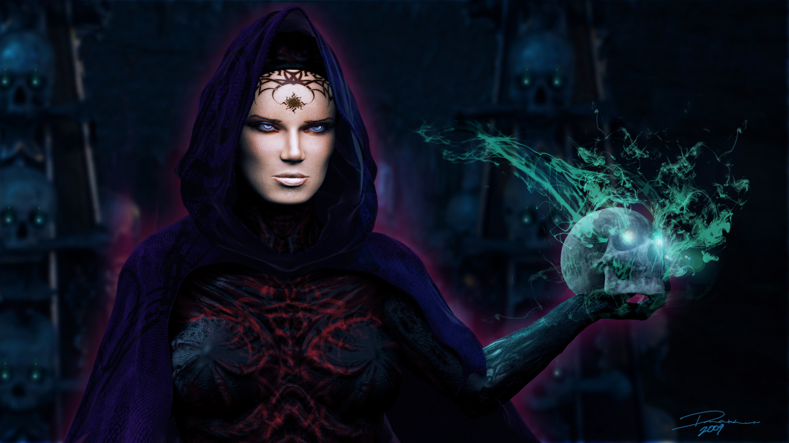 Saludos este es mi nuevo trabajo después de un rato que no publico. Una bruja, pronto viene Halloween aja. Invoca poderes de los cráneos humanos. Gracias a todos los que me han ayudado. Espero les guste. Saludos.