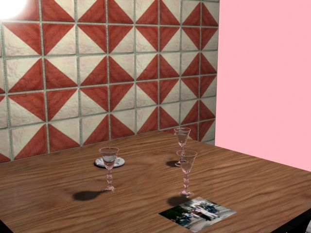 En las copas se ve un reflejo rosa, y es que, al renderizar el fondo en vez de ser negro es rosa, me podéis decir como poner el fondo en negro.