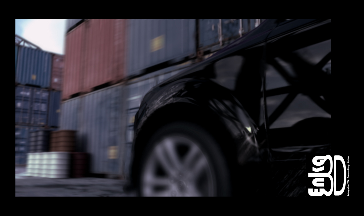 Comentar también que el coche no está modelado por mí, es de una biblioteca Evermotion que tenemos en el trabajo eso sí, un poco tuneado y Unwrapeado de nuevo para poder texturizarlo bien (suciedad, arañazos, etc) los Shaders están reseteados y configurados de nuevo puesto que los de Evermotion son muy chulos, pero si tiras un render te puedes morir y para una animación pues claro hay que optimizar lo máximo posible, todo lo demás está modelado por mi (environment) y los planos del principio es Camera mapping e integración, es un trabajo básicamente de iluminación y composición (la especialidad que más me gusta) y como generalmente siempre hago trabajos de infoarquitectura este trabajo ha sido la excusa perfecta para recrearme en otros campos y aprender un poco más disfrutando.