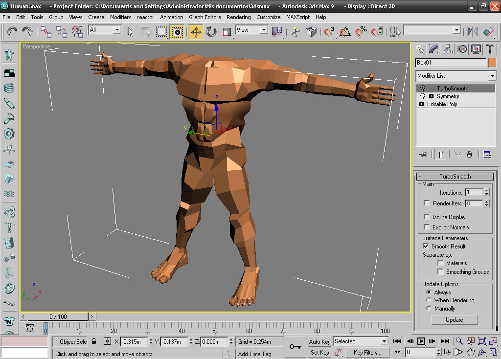 Modelado con 3d max: partiendo de una caja y trabajando en simetría.