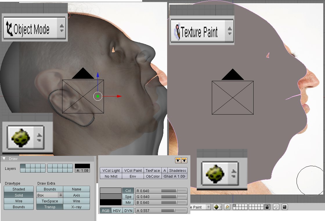 Gracias por tu ayuda Caronte. En modo objeto funciona como me indicaste. Pero a la que paso a modo Texture Paint, el modelo se vuelve opaco.