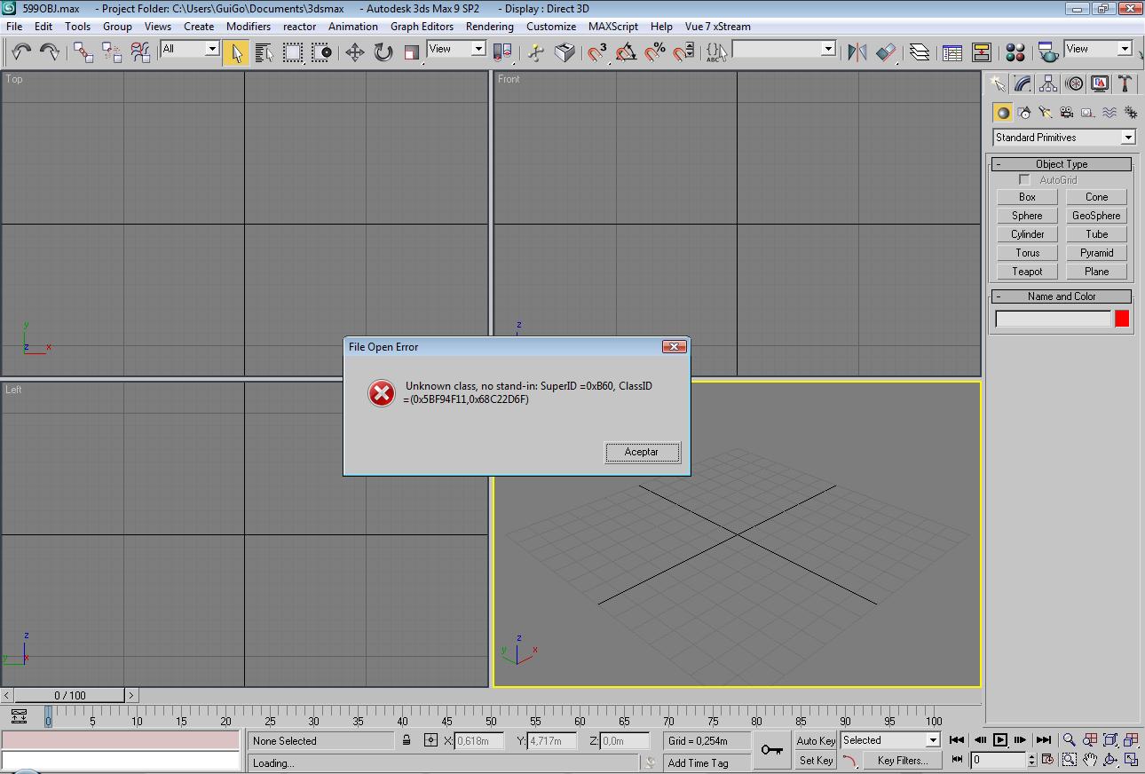 Buenas tardes a todos. Antes de comentaros en fallo que tengo, comentar que uso el 3ds Max 9 con Vray. Bueno, el problema me empezó a pasar hace unos días. Decidí instalar el 3ds Max 2010 por las novedades que traía en cuentiones de modelado y demás. Bueno, lo instale sin problema y abrí un par de archivos que tenía guardados desde 3ds Max 9. Después de probar Vray en el 3ds Max 2010 y ver que los tiempos de render los multiplica por 50, decidí volverme al max 9. Para mí sorpresa, los dos archivos que había abierto y guardado de nuevo desde 3ds Max 2010, ahora no me los abre el 3ds Max 9. No entiendo porque lo hace por que la extensiones no varían, es muy raro. Os paso unas capturas de los dos errores a ver si sabéis que lo provoca. Son consecutivos, cuando aceptas la primera ventana de error, aparece la segunda de lo que está dando el fallo.