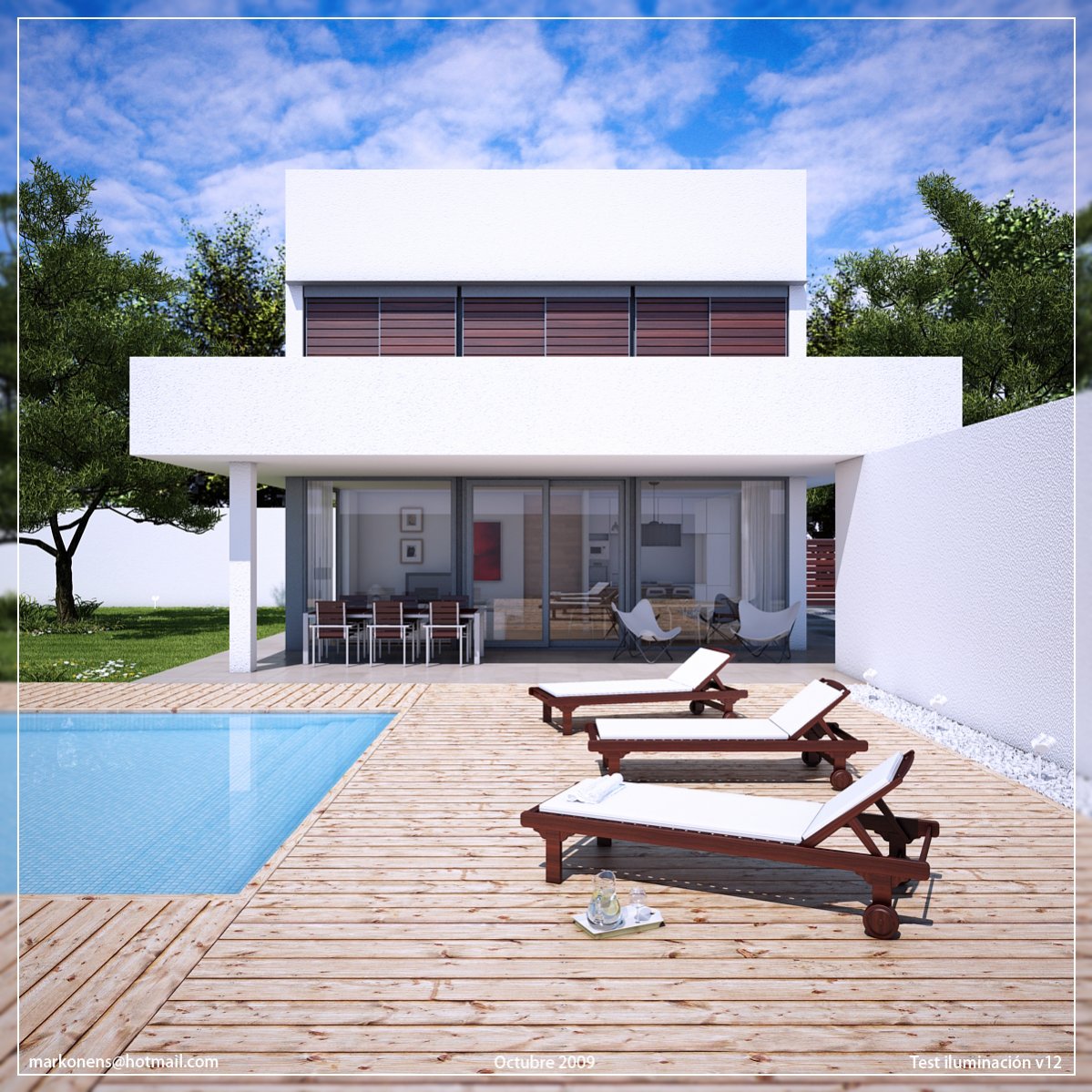 Bueno en algo tienes razón, si fuera yo, le colocaría un árbol (que no se vea) que me proyecte sobra sobre alguna parte de la piscina, o su alrededor (madera) para que se vea un poco más de contraste y no se vea tan no sé cómo explicarte. En fin, las sombras le dan frescura a la imagen, espero que me entiendas.