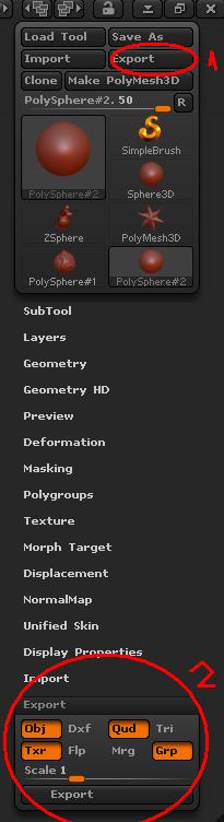 Segundo. Para exportar a (*.obj) solo le tienes que dar a export, seleccione el destino y ya, al menos lo hago así para max supongo que, será lo mismo.