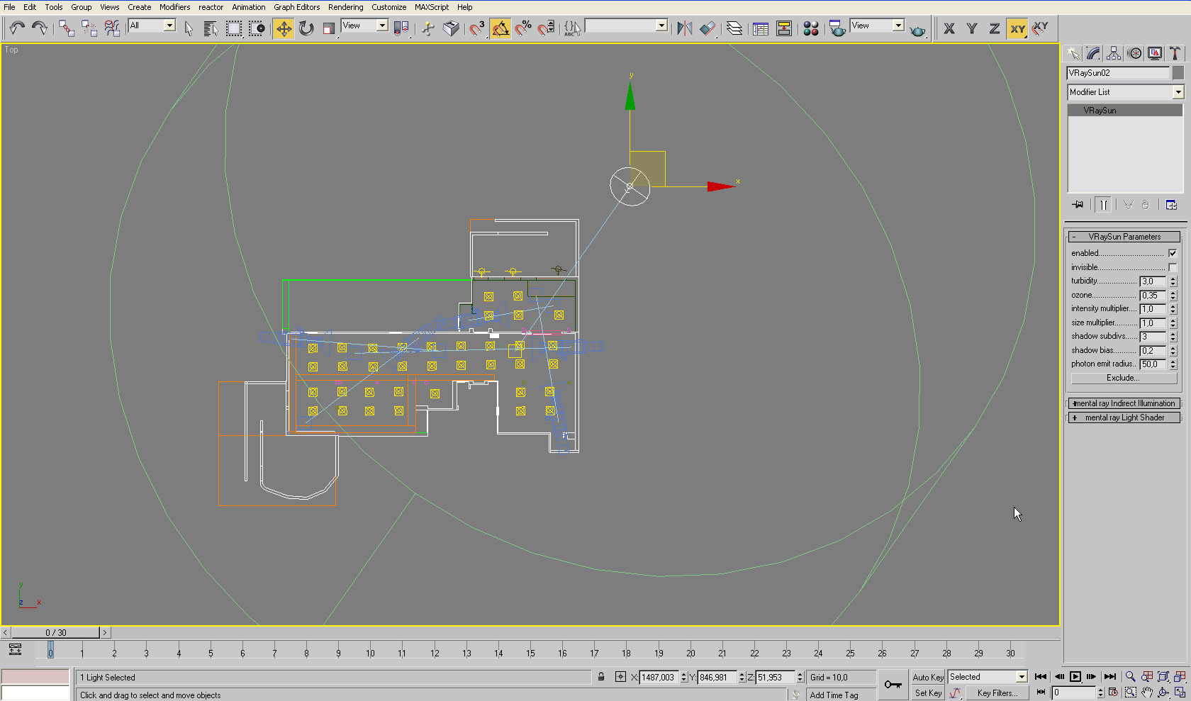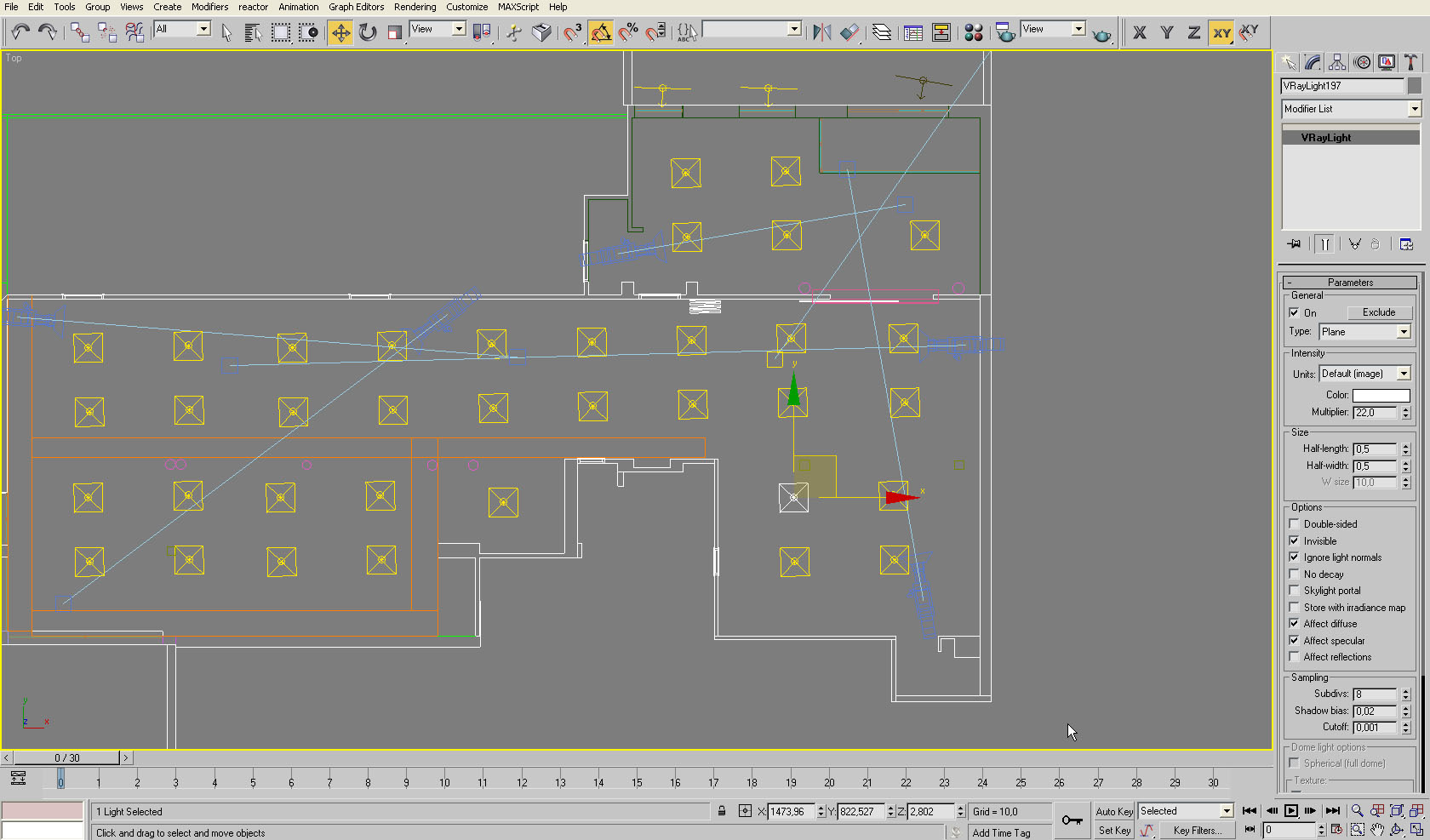 Luego las Vray Light si fuesen necesarias, en tragaluces, difusores de luz, para imitar fluorescentes, o pantallas de luz, ventanas, y patios interiores.
