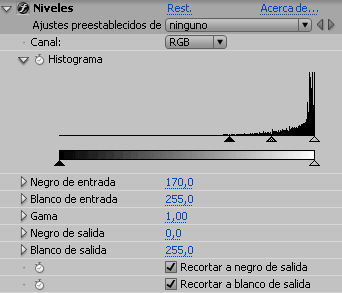6. Aplica el efecto corrección de color/niveles. Aumenta el valor negro de entrada a +/- 170.