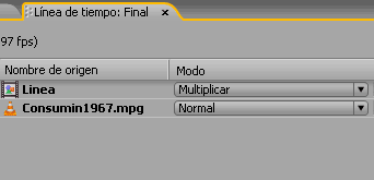 7. Crea una nueva composición que incluya el video original y la composición con la línea. Ubica en la parte inferior el video original y en la parte superior la composición con la línea, cambia el modo de fusión a multiplicar.