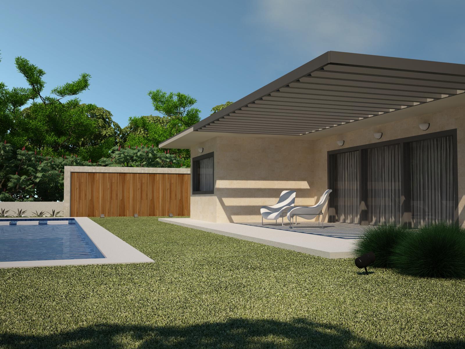 El pasto está un poco claro de color a mi gusto (sobre todo en los diurnos), y le movería un poco las cortinas para darle variacion.