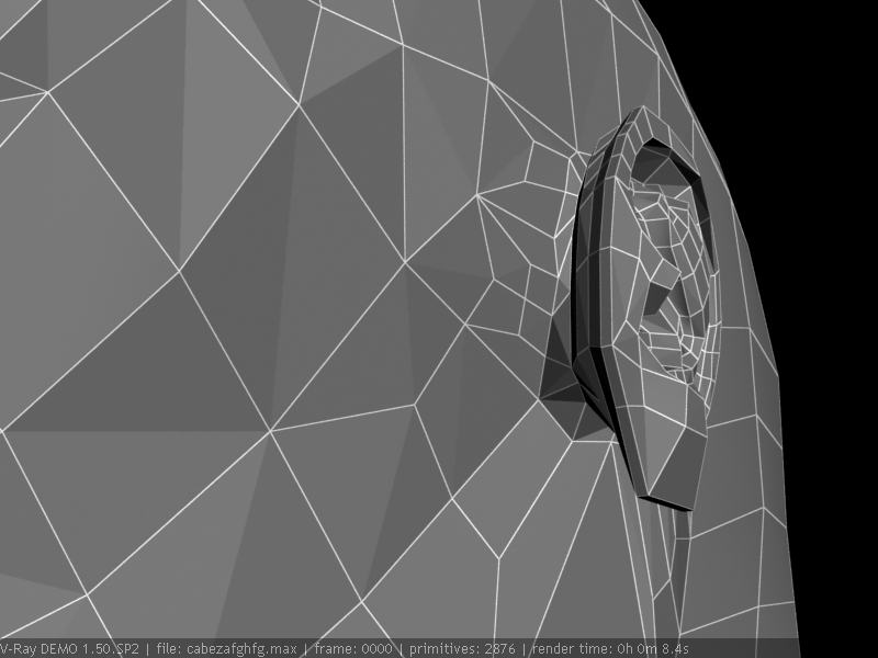 Al final la oreja cuenta con bastantes polígonos y no soy capaz de acoplarla a la cabez sin hacer alguna chapuzilla.