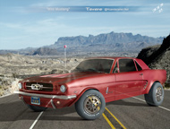 También fíjate en el tema de las sombras, las rocas que hay a al derecha de al imagen son unas sombras fuertes, muy negras, en cambio la de tu coche son muy suaves, oscurecelas más para que este más acorde con la iluminación de tu imagen de fondo. Un saludo.