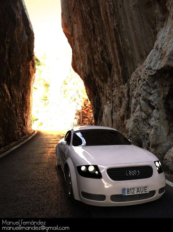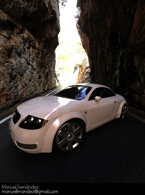 Yo también modele este mismo coche, básicamente con el aprendí a trabajar con Editable Poly en 3dsmax. Me se ese coche al milímetro, y lo cierto es que, a mí tampoco me quedo muy bien (fue mi primero) en líneas generales se ve que es un Audi y cumple, pero en los detalles es donde fallas, por ejemplo, en las entradas de aire delanteras, justo debajo de los faros, el morro da la impresión de estar ahuevado y hay algunas aristas extrañas, como la que une puerta y techo, muy duras.