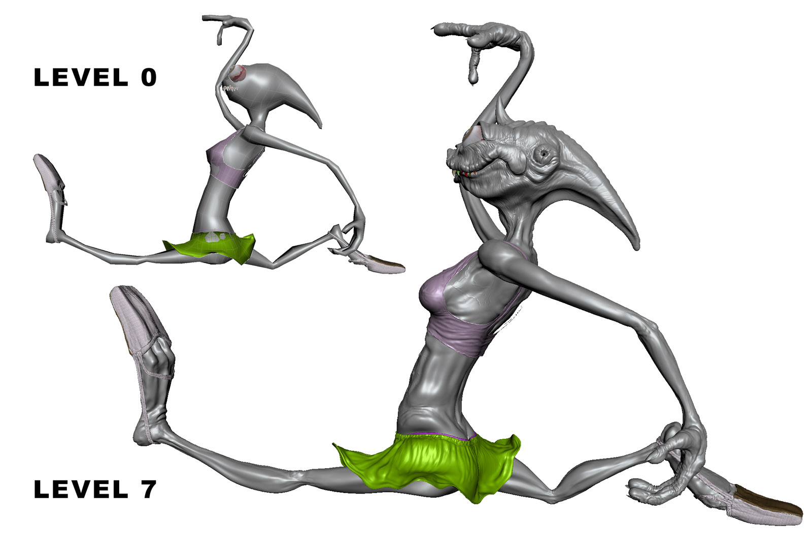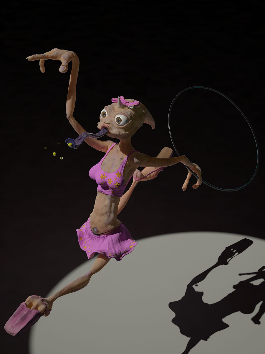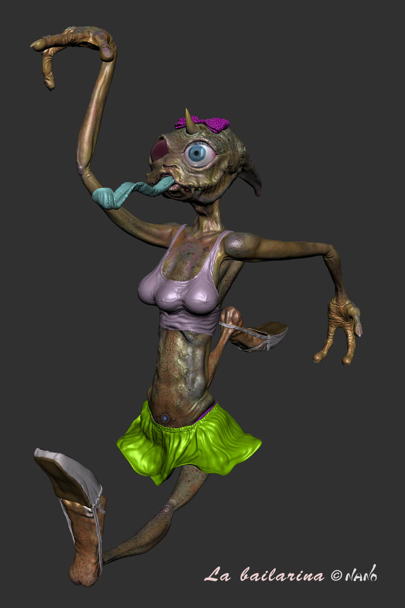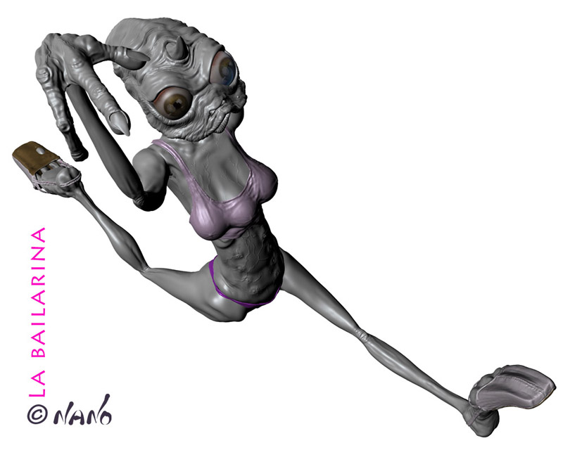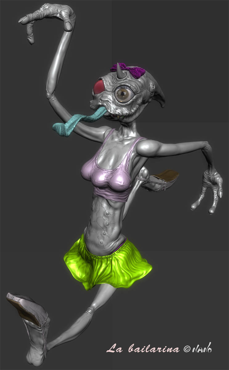 Muy buenas, estoy liado con una bailarina alienígena, un viejo boceto olvidado. Primero me he creado una malla básica en 3dsmax, y luego le estoy dando detalle en Mudbox 2010, ya va por 12.000.000 de poigonos, no sé si va a petar el ordenador?