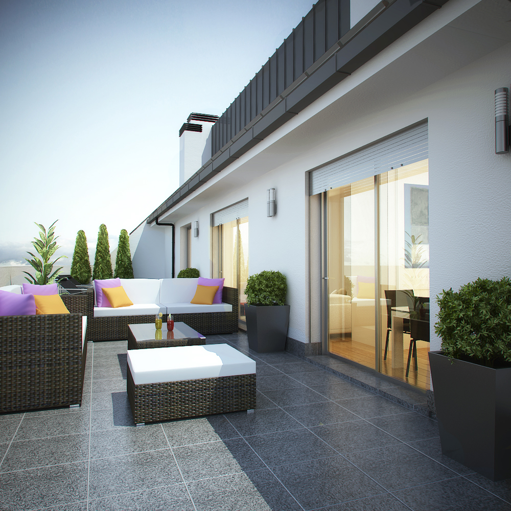 Si no fuese por las plantas que están al fondo (tipo pino) que le saca realismo a la imagen pensaría que es una fotografía de una construcción muy prolija. Excelente trabajo. Felicitaciones.