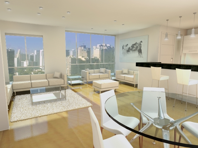 Hola inquisidor3d, no sé porque dices que el sol está bien. Si detallas la imagen de fotografía el sol cae en frente de los edificios, y es imposible que entre a la sala en forma contraria. De hecho, si no seguimos de la fotografía de fondo, no tendría porque entrar sol al interior.