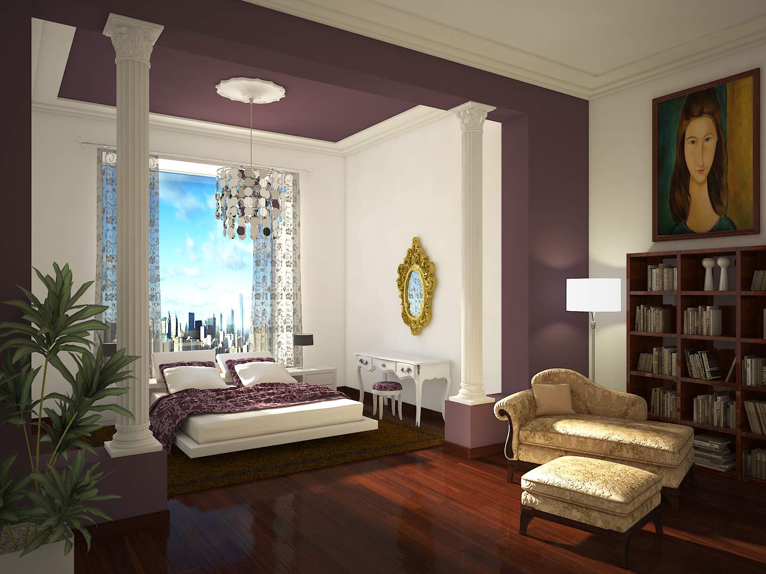 También cambiaría la orientación, pondría la cama dónde la estantería y la zona de la ventana después de las columnas la dejaría con la chaise longe y los libros.