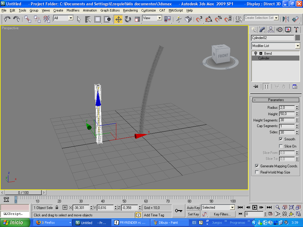 10_ la acomodamos para arriba y le agregamos el modificador bend: