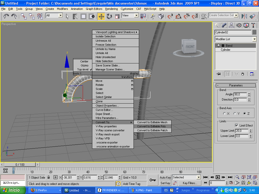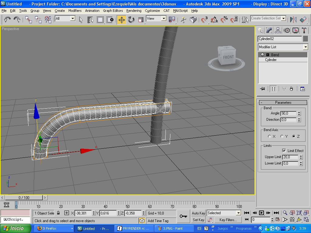 4_ y nuevamente le ponemos el modificador bend esta vez así: