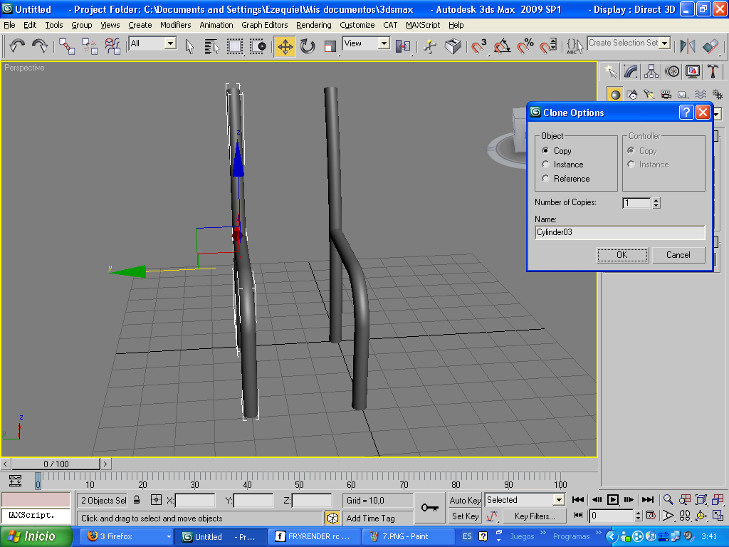 8_ luego seleccionamos los dos cilindros y los clonamos: