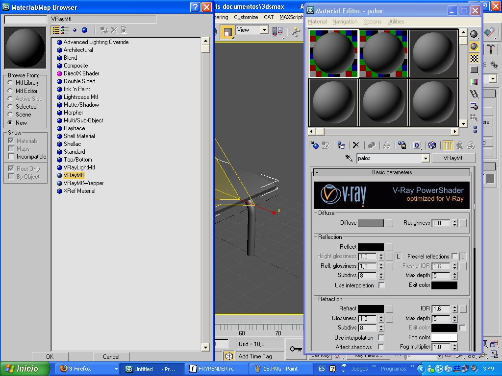 15_ ahora viene los materiales, apretando la nos saldrá el editor de materiales. Elegimos una de las esferas y apretamos donde diga standard (por defecto sale eso) y nos saldrá una ventana en la que ponemos vraymtl (el que no tenga Vray aviseme y le digo como es en standard) y en otra esfera hacemos lo mismo: