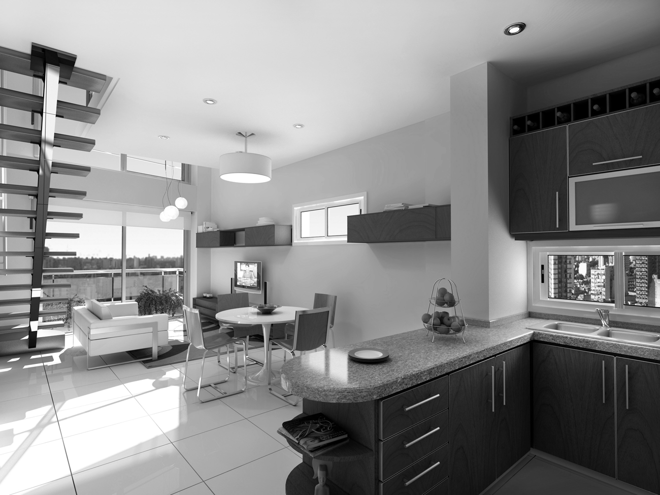Como andan camaradas, gracias por los comentarios, la cámara esta deformada a propósito ha pedido del cliente que quieren vender un espacio super reducido con un espacio enorme, cosa que no comparto, pero, en fin, la fotografía de fondo lo mismo tuve que distorsionarla, voy a ver si subo otra versión, con respecto a la iluminación que proponen? Saludos buen año.