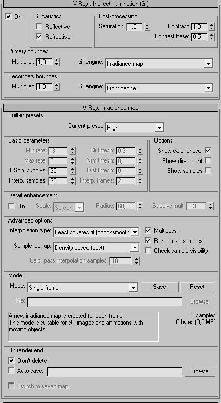 Lo primero que te aconsejo es que, aprendas por tú mismo lo que hace cada parámetro de Vray, puedes mirar en Endora, por ejemplo.